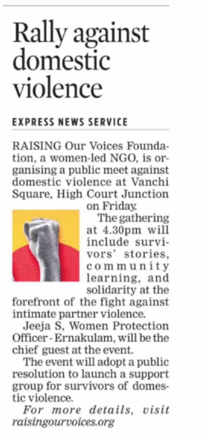 For any query: info@raisingourvoices.org